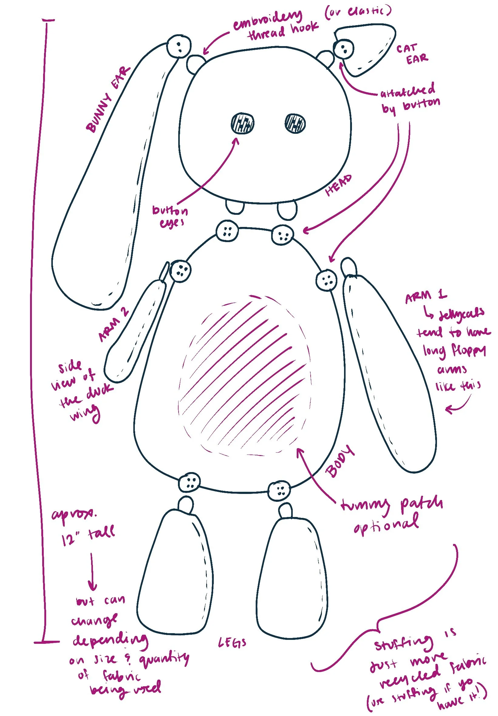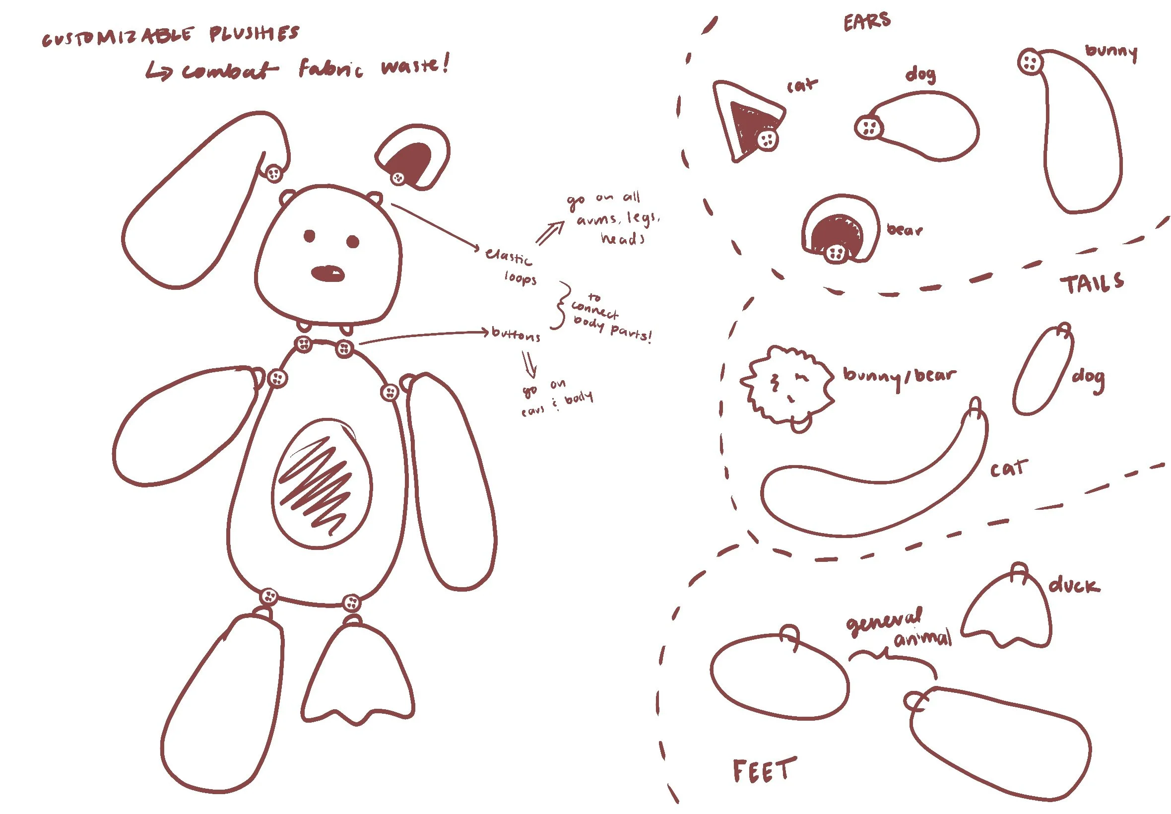 This is Komad, a modular plushie that changes depending on your mood. Aiming to reduce fabric waste, this product is created from recycled fabrics and each piece is reusable to create different plushies.